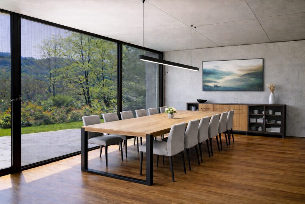 Las viviendas actuales están diseñadas para aprovechar la luz natural y generar continuidad entre los espacios interiores y el entorno exterior. Grandes ventanales, puertas correderas y amplias superficies acristaladas permiten que el jardín, la terraza o el paisaje formen parte del día a día dentro de casa.